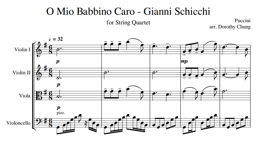 A string quartet arrangement of "O Mio Babbino Caro" from the opera "Gianni Schicchi" by Giacomo Puccini.